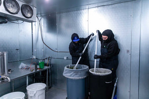 Once we have identified what looks like quality material, the next step is test washing. Test washing allows us to determine the strains suitability for ice water extraction prior to putting it into production. If a strains’ flavor, potency, and yield is up to our standards and it is viable for the commercial level, the final product must then pass our rigorous team taste testing. Then and only then will we move forward with production. We strive to ensure that our menu has a full-bodied mix of flavor profiles represented at all times. So, we are constantly testing and washing raw material and we are always on the hunt for new genetics.